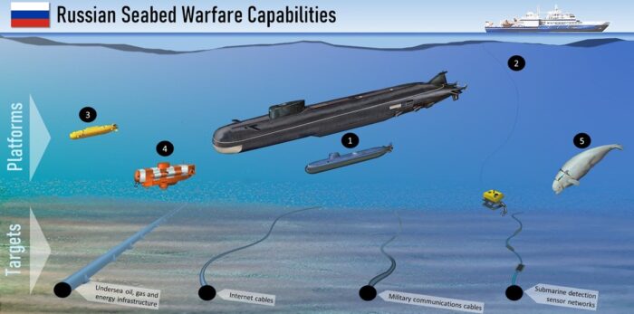 Comprising more than 1.5 million kilometers of subsea fibre‑optics network is the indispensable infrastructure of the 21st century. But as our dependency has increased, security remains a challenge. Funnelled through exposed choke points (often with minimal protection) and their isolated deep-sea locations entirely public, the arteries upon which the Internet and our modern world depend have been left highly vulnerable. Whether from terrorist activity or an increasingly bellicose Russian/Chinese naval presence, the threat of these vulnerabilities being exploited is growing. A successful attack would deal a crippling blow to Ukraine’s/Taiwan’s security and prosperity. The threat is nothing short of existential. If some of these cables were cut, global communications would be severely slowed. If all of them were cut, the global internet would cease to exist. For instance, if the 40 cables connecting the US to the rest of the world were severed, it is estimated that only 7% of US internet traffic could be carried by alternate satellite infrastructure (Liu et al., 2020).