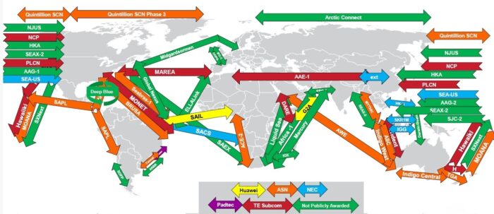 Undersea fiber optic cables are the unsung heroes of our interconnected world, serving as the invisible arteries that facilitate global communication and data exchange. To view a map of the world’s undersea cable networks is to understand which countries and commercial hubs command the greatest flows of wealth, knowledge, and power. As such, the most densely packed clusters of cables originate and terminate between the United States (US) and Europe, and these same places have major arterials connecting to economic hubs in Asia, namely Japan, China, Taiwan, and about a dozen other places. Sub-sea thoroughfares – transatlantic, transpacific, Africa–Europe, and intra-Asia subsea links carry data of hundreds of terabits per second, dwarfing terrestrial routes. Land-based linkages – all terrestrial cross-border routes combined account for less than one percent of global internet traffic, making them a rounding error in comparison. Modern undersea fiber-optic cables carry massive amounts of data, with top-tier systems boasting capacities exceeding 200 terabits per second (Tbps). Undersea fiber optic cables have a lifespan of 25 years. Without these cables, global communication, commerce, and government systems would come to a screeching halt. But despite their critical role, few people are aware of their existence — or their fragility. I have published articles on computer & internet, 5G, artificial intelligence and quantum computing. Today it’s time for undersea (submarine) communication (fiber-optics) cables, the backbone of modern world.