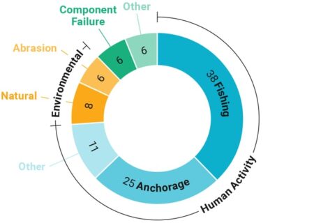 Shunt faults (insulation failure/short circuits) are 86% predominantly due to anchoring/fishing.