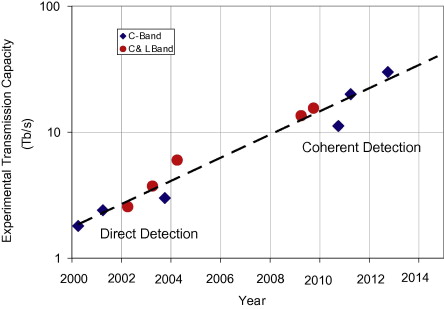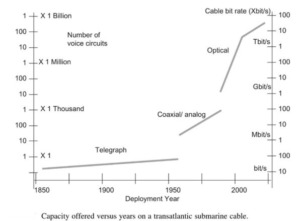 Over the last 40 years, the capacity of these optical cables has been increasing by 40 per cent yearly. It’s an exponential growth which in turn powers the exponential growth of the internet.