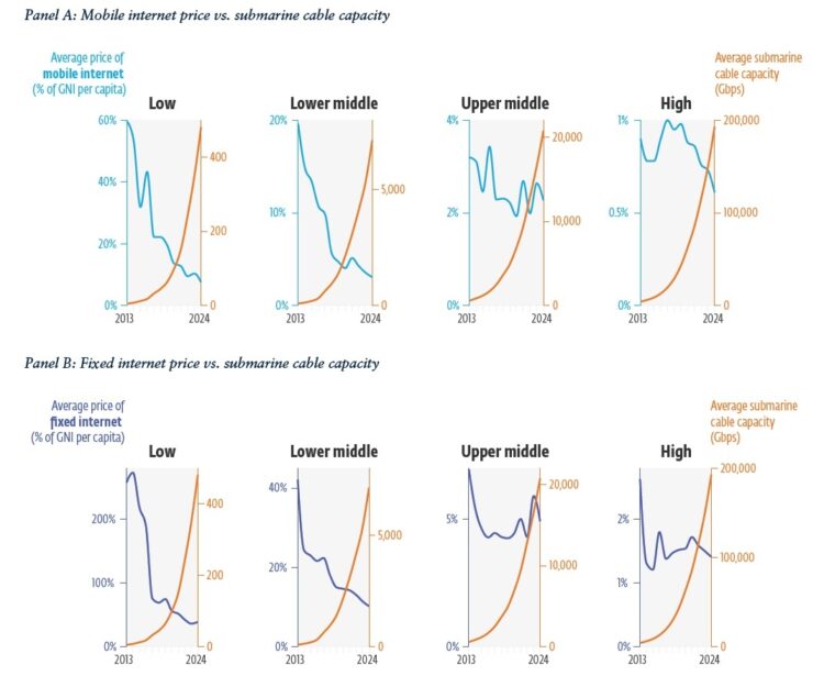 Expanding the reach of subsea cables can help bring the internet to more people. Doubling the capacity of these cables can lower internet prices in a country by as much as 30 to 50 percent.