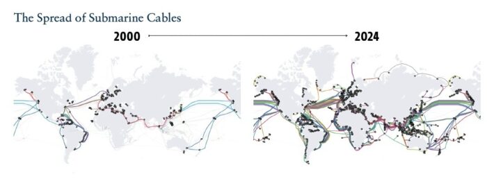 Every ChatGPT prompt, every AI-generated insight, every high-frequency stock market trade, and every classified military order sent across the world depends on infrastructure few ever think about: undersea data cables. These cables carry 95% of the world’s data traffic, yet they remain almost entirely unprotected, unregulated, and unmonitored. The undersea cables that carry Internet traffic around the world are an understudied and often underappreciated element of modern Internet geopolitics, security, and resilience. Without these cables, the Internet would not exist as it does today. These cables are largely owned by private companies, often in partnership with one another, though some firms involved in cable management are state-controlled or intergovernmental. Submarine cables are, therefore, a major vector of influence that companies have on the global Internet’s shape, behavior, and security. Not only does the private sector manage large swaths of the constituent networks that compose the broader Internet, it also builds, owns, manages, and repairs the underlying physical infrastructure. More than 200 private operators control a network of 900,000 miles of undersea fiber-optic cable.