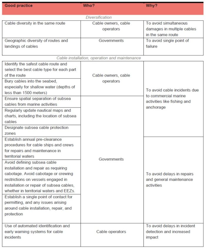 Presently, the Red Sea, the Baltic Sea and the Taiwan Straits have emerged as global hotspots where severe damage to cables has considerably increased, raising suspicions of possible subversive malicious activity. There are several conceivable objectives severing a cable might achieve: cutting off military or government communications in the early stages of a conflict, eliminating internet access for a targeted population, sabotaging an economic competitor, or causing economic disruption for geopolitical purposes. Actors could also pursue several or all of these objectives simultaneously. Without a coordinated security framework, undersea cables are an easy target for sabotage, especially in times of geopolitical tension.
