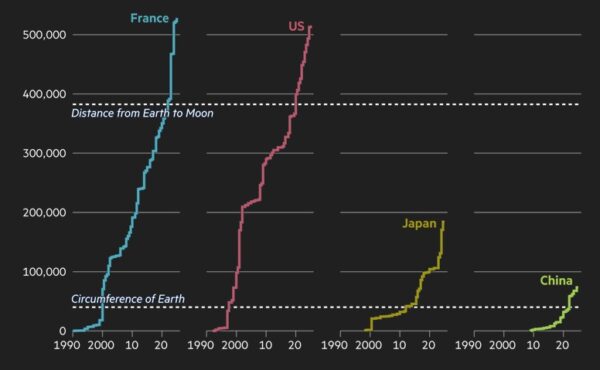 If you ask any average citizen, “where does the internet come from?” the answer you most likely get would be from space, via satellites. Wrong. Modern consumers have come to imagine the internet as something unseen in the atmosphere – an invisible “cloud” just above our heads, raining data down upon us. Because our devices aren’t tethered to any cables, many of us believe the whole thing is wireless but the reality is far more extraordinary. The vast majority of information that flows across the tens of billions of devices connected to the internet comes from the sea. Around 600 fiber-optic undersea cables carry more than 95% of all internet data. The fact that we route internet traffic through the ocean – amidst deep sea creatures and hydrothermal vents – runs counter to most people’s imaginings of the internet. Didn’t we develop satellites, 4G/5G and Wi-Fi to transmit signals through the air? Haven’t we moved to the cloud? The reality is that the cloud is actually under the ocean. Submarine fiber-optic cables are actually state-of-the-art global communications technologies that use light to encode information and these cables carry data faster and cheaper than satellites. These are the veins of the modern world, stretching almost 1.5 million km under the sea, connecting countries via physical cables which funnel the internet through them.